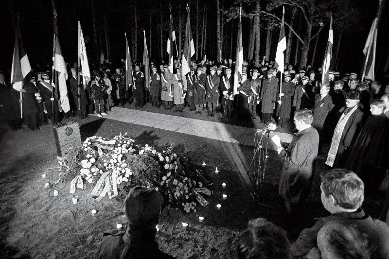 Konstantin Pätsi ümbermatmine. Metsakalmistul kõneleb hr Matti Päts. 21.10.1990. Foto: Tiit Veermäe. EFA.204.0.256707